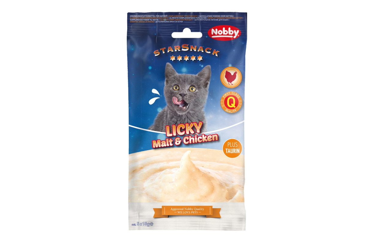 Корм лакомство для кошек Nobby Starsnack супчик с курицей для шерстевыведения 5*15 50882