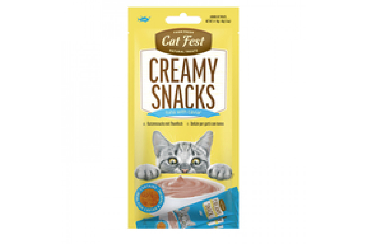 Cat Fest Creamy Snacks – Тунец с икрой летучей рыбы, 4x10 г (40 г) – нежное кремовое лакомство для кошек с высоким содержанием тунца (45,5%) и икры летучей рыбы (4%). Благодаря мягкой текстуре и насыщенному вкусу, снек станет любимым угощением питомца. Рецепт обогащён таурином и витамином Е для здоровья сердца, зрения, кожи, шерсти и иммунной системы. Без искусственных консервантов и красителей. Подходит для взрослых кошек всех пород, включая стерилизованных и с чувствительным пищеварением.