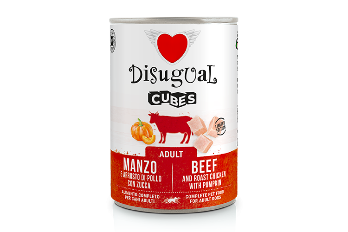 Disugual Cubes — это полнорационный влажный корм, специально разработанный для вашей собаки, с новой текстурой, сочетающей мясной фарш с вкусными кубиками и отборными овощами или злаками!