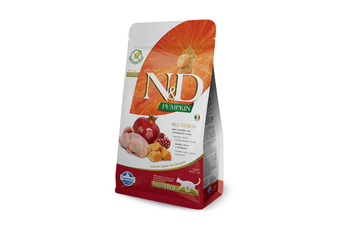 Farmina N&D Pumpkin Quail & Pomegranate Neutered разработан в соответствии с питательными уровнями, установленными AAFCO