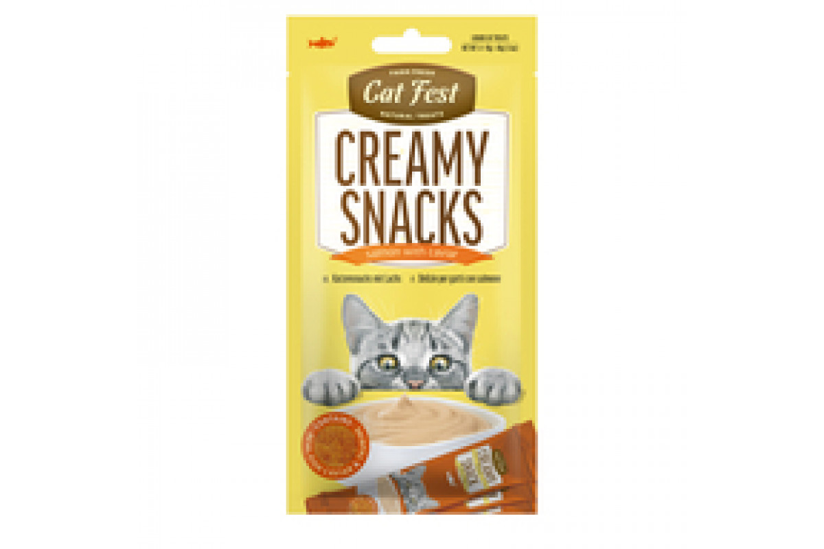 Cat Fest Creamy Snacks – Лосось с икрой летучей рыбы, 4x10 г (40 г) – премиальное кремовое лакомство для кошек с изысканным сочетанием лосося (45,5%) и икры летучей рыбы (4%). Мягкая кремовая текстура и богатый вкус превращают этот снек в деликатес, который порадует даже самых привередливых питомцев. Формула обогащена таурином и витамином Е, которые поддерживают здоровье сердца, зрения, кожи, шерсти и иммунной системы. Без консервантов и искусственных красителей. Подходит для взрослых кошек всех пород, включая стерилизованных и с чувствительным пищеварением.